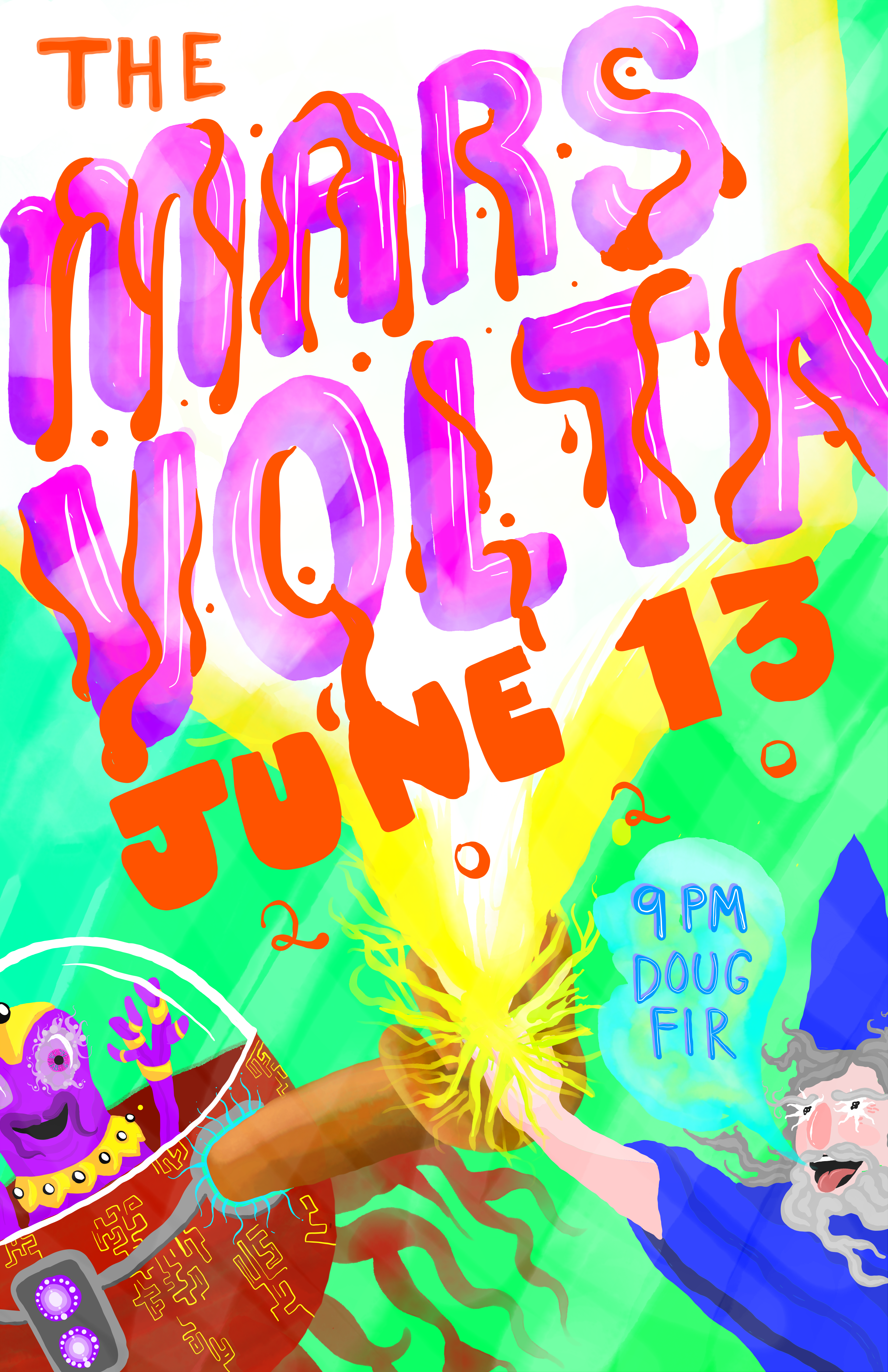 I illustrated this set of posters for three different musical acts. These performers all have different styles and energies and I wanted to push those personalities to the forefront in designing these pieces.